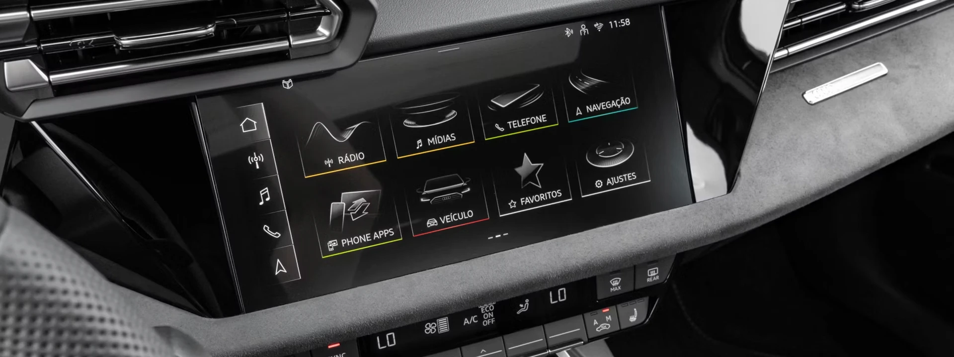 O Audi Virtual Cockpit Plus exibe as informações de condução mais importantes em uma das três variantes de layout, com operação personalizável, navegação de menu intuitiva e display orientado à direção.